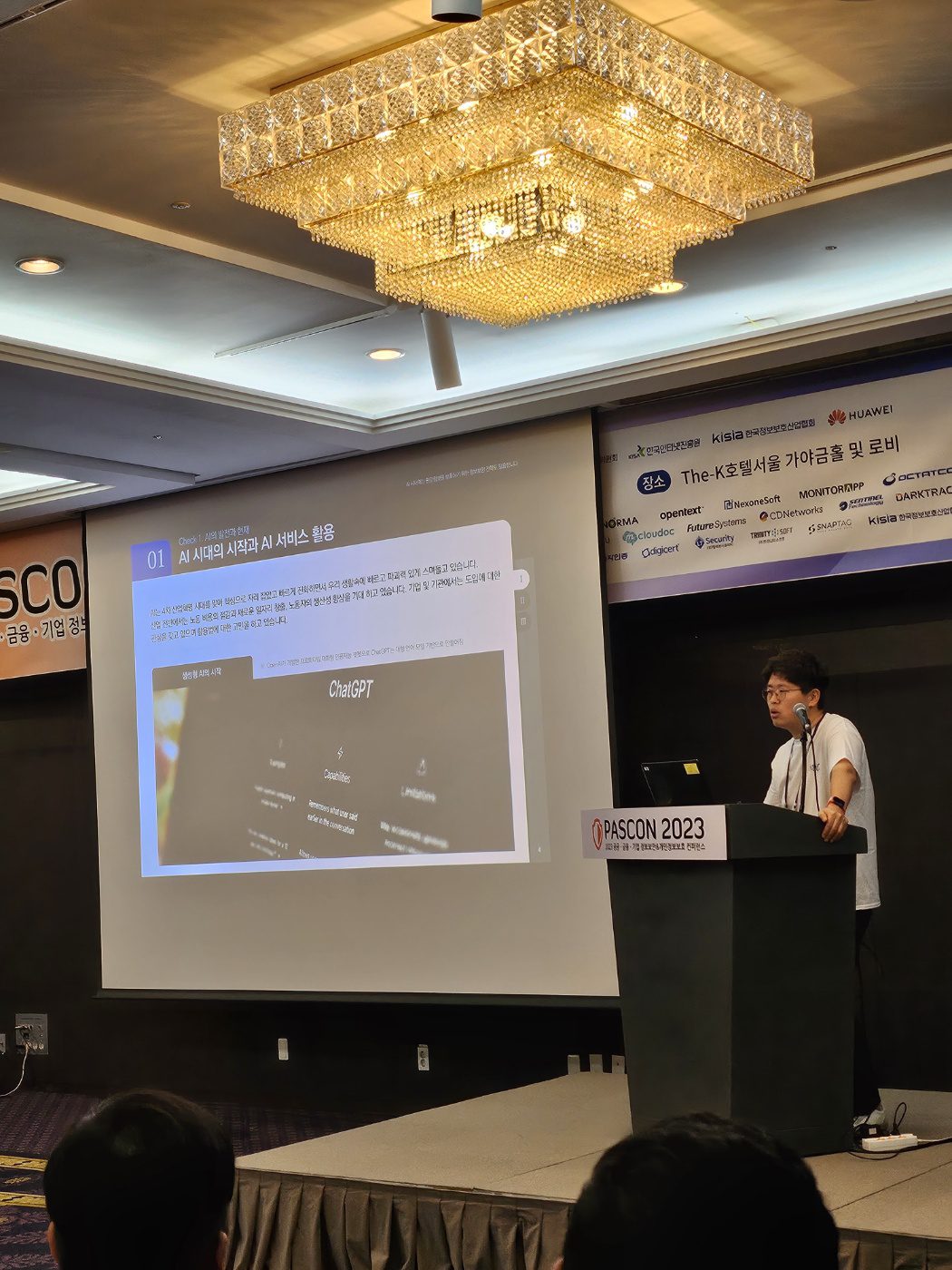파수가 9월 5일(화) 더케이호텔에서 개최되는 제11회 정보보안&개인정보보호 컨퍼런스 PASCON 2023에 참가했습니다. 파수는 부스를 통해 AI 기반 개인정보 검출 솔루션 Fasoo AI-R Privacy, 생성형 AI 데이터 유출 방지 솔루션 Fasoo AI-R DLP, 악성메일 훈련 서비스 Mind-SAT을 소개했습니다.