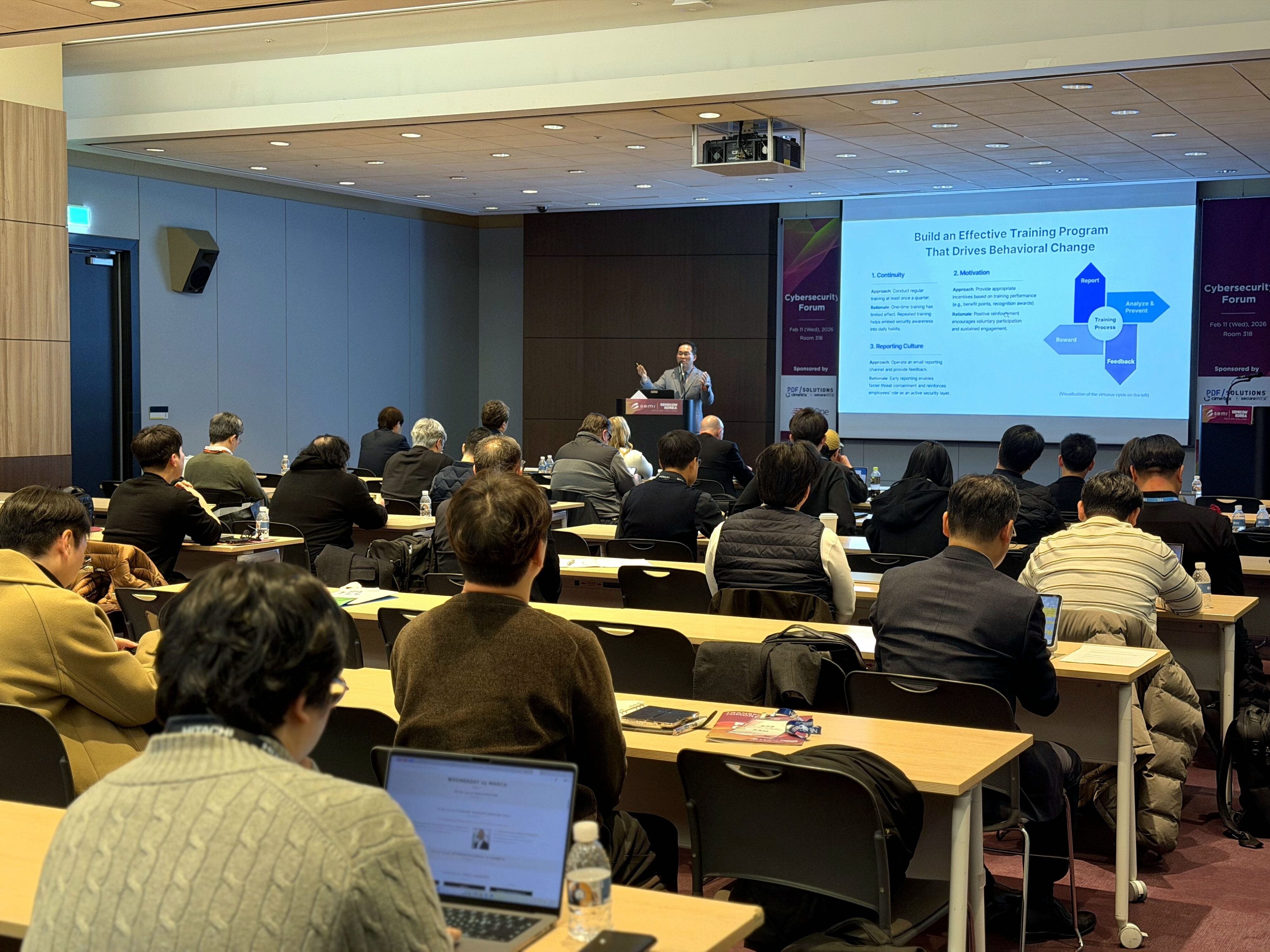 지속가능한 반도체 산업을 위한 보안의 기본 전략으로 임직원 보안 역량 강화, 데이터 암호화, 신속한 복구 및 대응 체계를 제시했습니다.