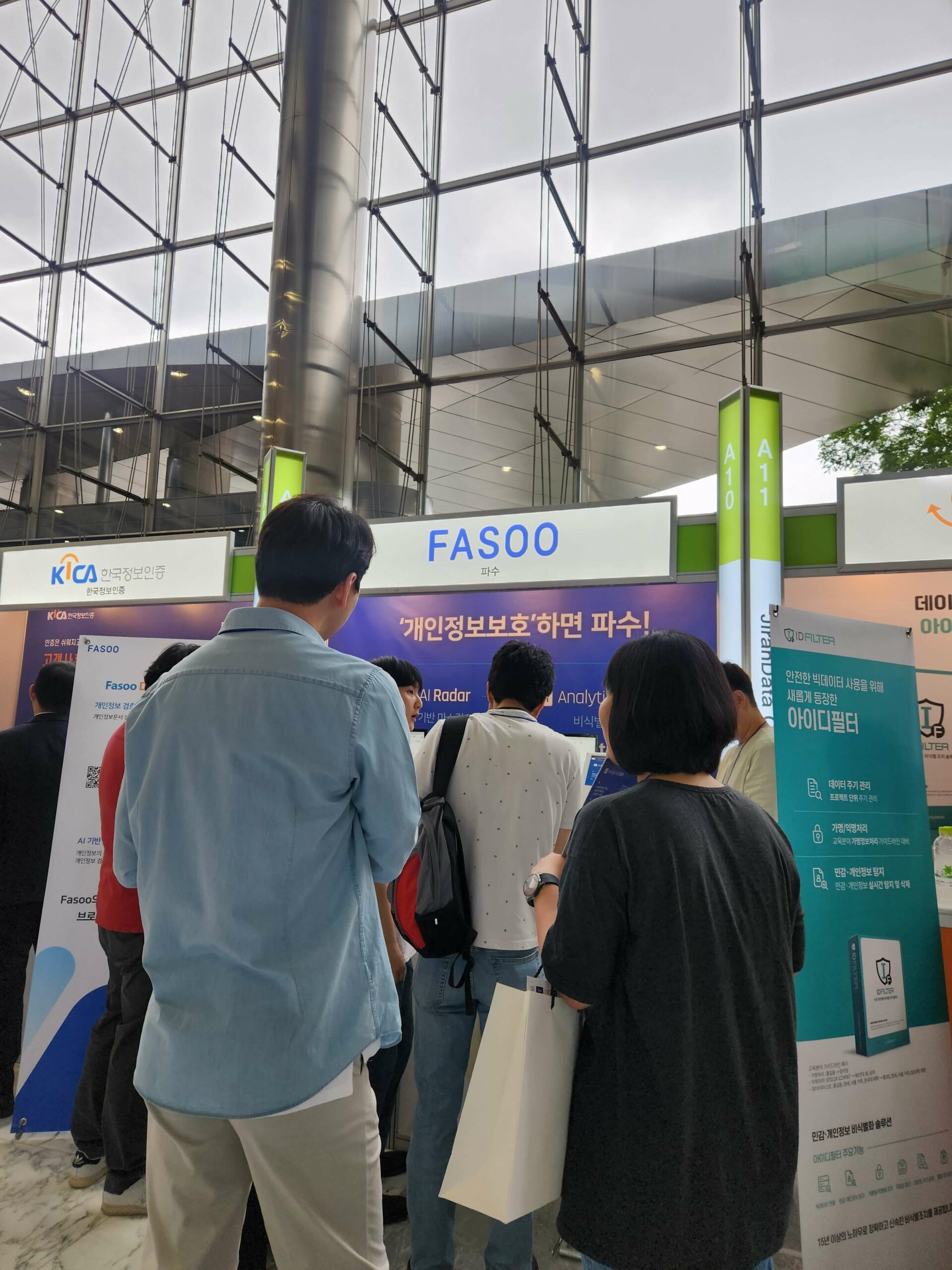 부스에서는  AI기반 데이터 마스킹 솔루션 Fasoo AIR와 개인정보 검출 관리 솔루션 Fasoo Data Radar, 개인정보 비식별화 솔루션 AnalyticDID를 소개시켜드리며, 고객분들의 많은 관심을 받았습니다.