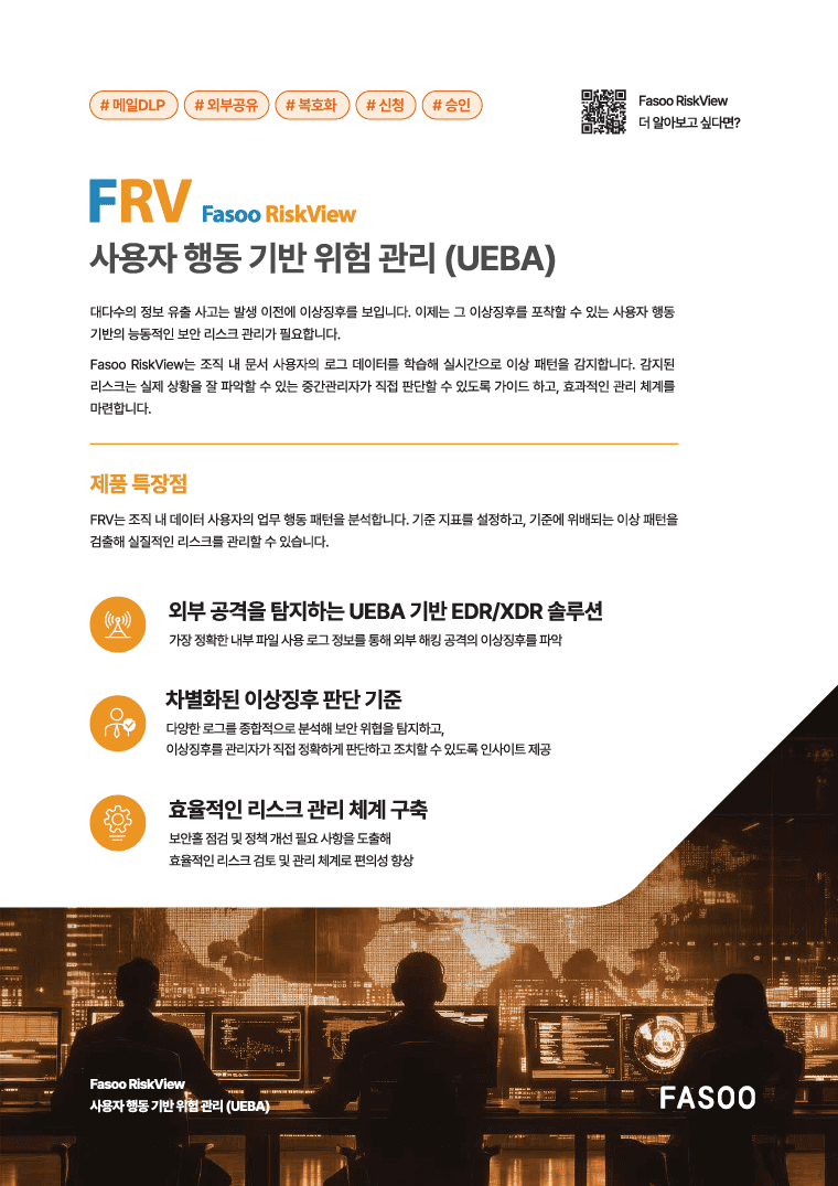 대다수의 정보 유출 사고는 발생 이전에 이상징후를 보입니다. 이제는 그 이상징후를 포착할 수 있는 사용자 행동 기반의 능동적인 보안 리스크 관리가 필요합니다.