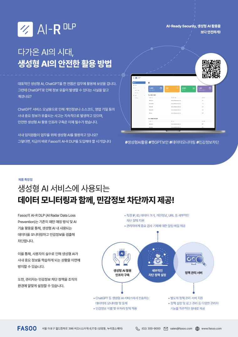 그렇다면, 지금이 바로 Fasoo의 AI-R DLP를 도입해야 할 시기입니다.