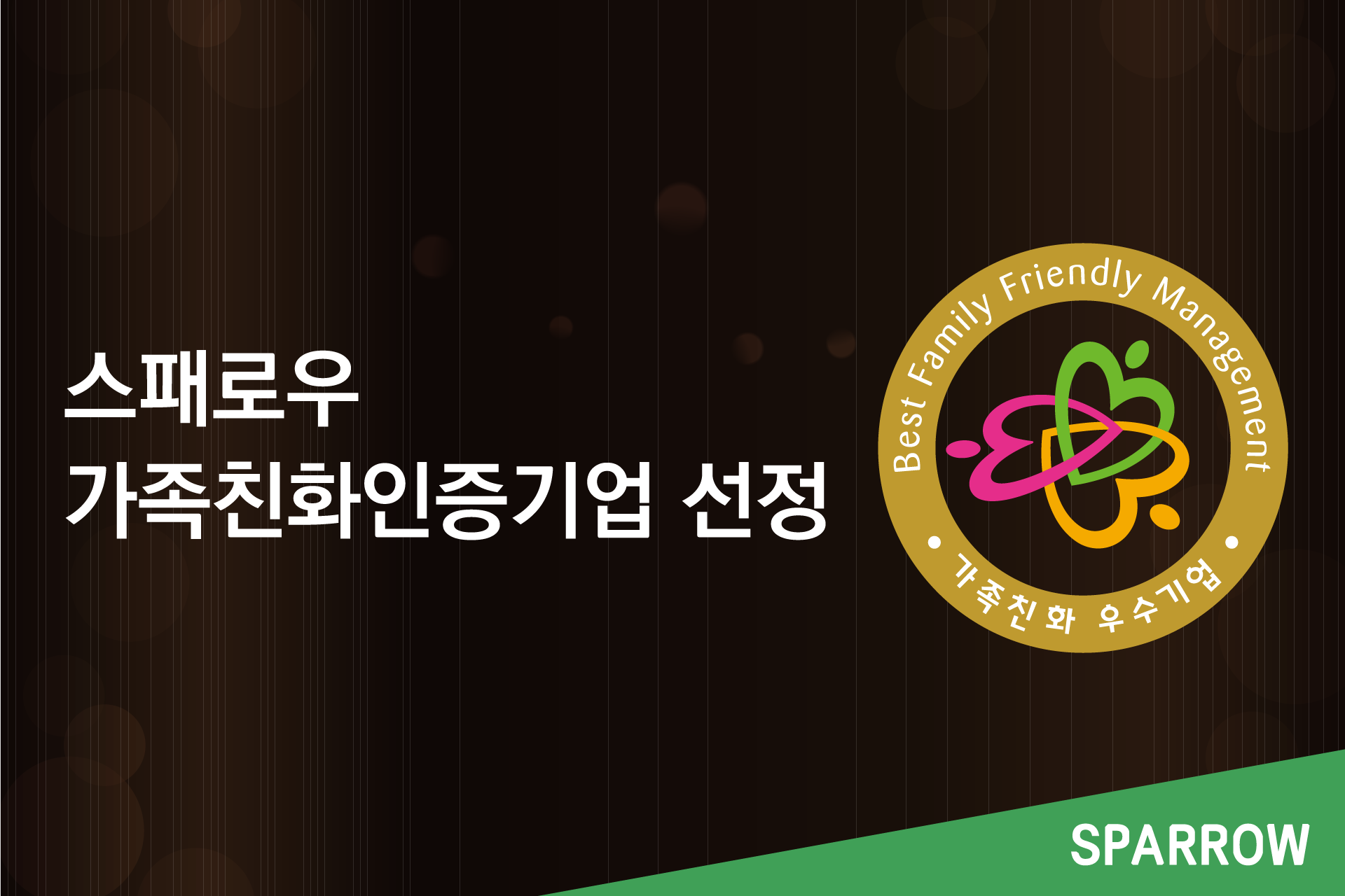 뉴스 및 보도자료 일하기 좋은 강소기업 스패로우, 가족친화인증기업 선정 스패로우가 성평등가족부가 주관하는 ‘가족친화인증기업’에 선정됐습니다. 가족친화인증제도는 자녀출산 및 양육지원, 유연근무제 등 근로자가 일과 가정의 균형을 이룰 수 있도록 가족친화제도를 모범적으로 운영하는 기업 및 공공기관에 2025.12.15