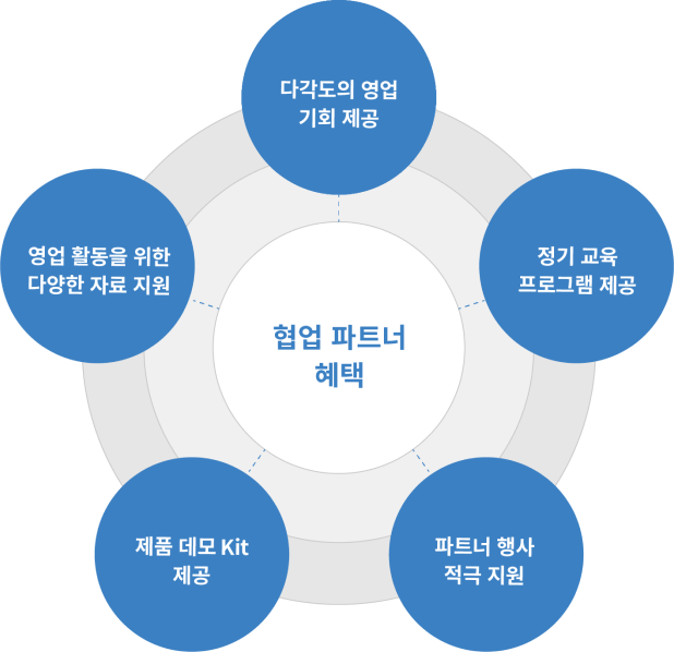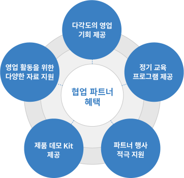 서비스를 제공할 수 있도록 파트너 프로그램을 운영하고 있으며 세일즈, 마케팅, 기술지원 영역에서 다양한 혜택을 제공합니다.