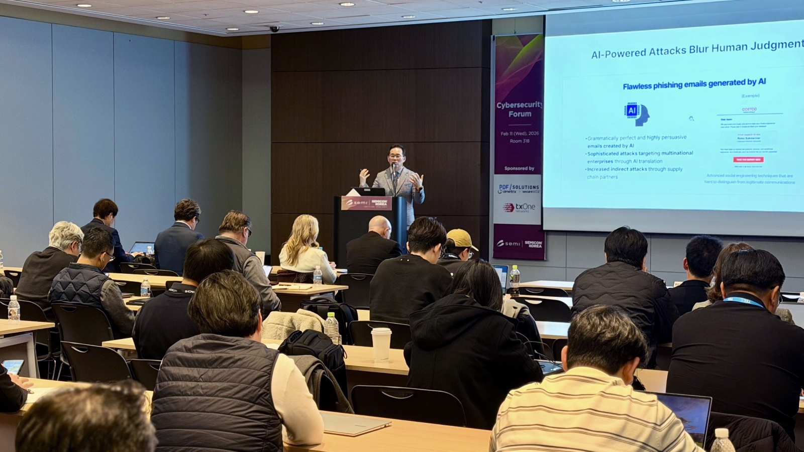 파수, 세미콘 코리아 2026에서 반도체 산업을 위한 보안 전략 제시 파수가 11일 국내 최대 규모의 반도체 박람회 ‘세미콘 코리아 2026(SEMICON Korea 2026)’에서 정보보안 포럼 세션 발표를 진행하며 반도체 산업을 위한 공급망 보안 전략을 공유했습니다. 2026.02.12