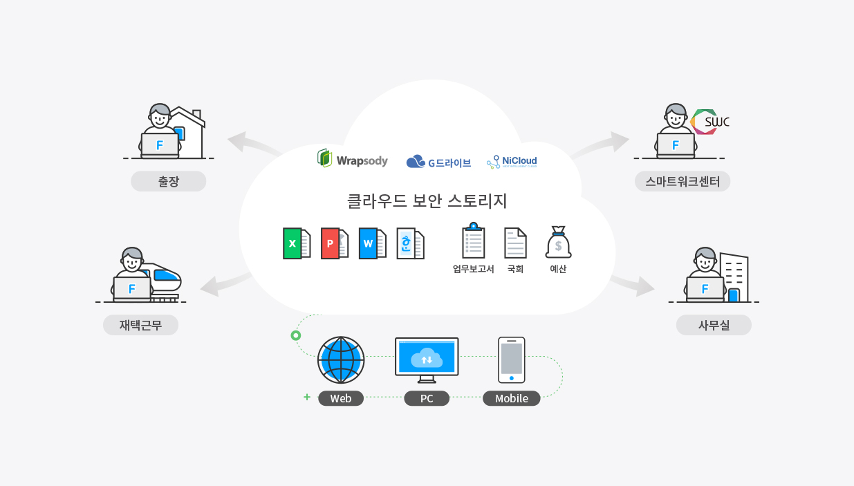 클라우드 스토리지 사용으로 문서 공유 및 업무 협업은 편리해 졌으나, 중요 데이터 유출 및 오남용 등 보안 위협에 대응하기에는 취약합니다. 개인정보보호, 정보공개법, 국정원 보안업무 규정 등 까다로운 보안 규정을 준수하기 위해서는 여러 솔루션들을 복합적으로 도입해야 하며, 각 솔루션들을 따로 관리해야만 합니다. 이러한 불편함을 해소하고자 최근 굵직한 기관들에서 데이터 보안 및 관리, 협업을 하나의 솔루션으로 제공하는 파수의 클라우드 스토리지 보안 솔루션을 선택해 구축하고 있으며, 파수는 성공적인 레퍼런스들을 기반으로 새로운 비즈니스 기회 창출을 적극 이끌어 간다는 계획입니다.