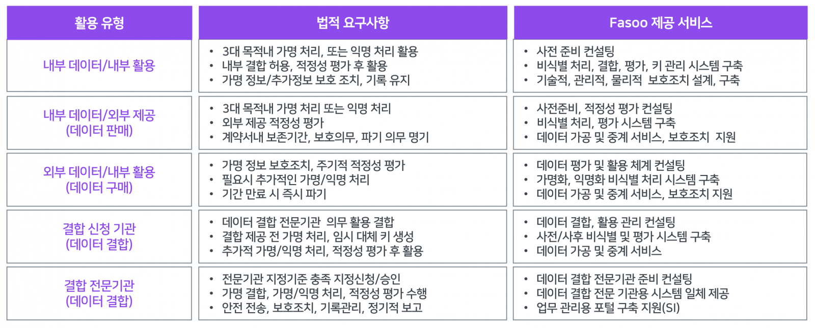 그동안 강력한 규제로 데이터를 활용한 비즈니스의 장벽이 높았으나, 올해 1월 데이터 3법 통과로 개인정보의 다양한 활용이 가능해 졌습니다. 이에 파수는 가명정보를 안전하면서도 목적에 맞게 활용할 수 있는 방안으로 비식별화 솔루션 제품인 AnalyticDID를 제공하고 있습니다.
