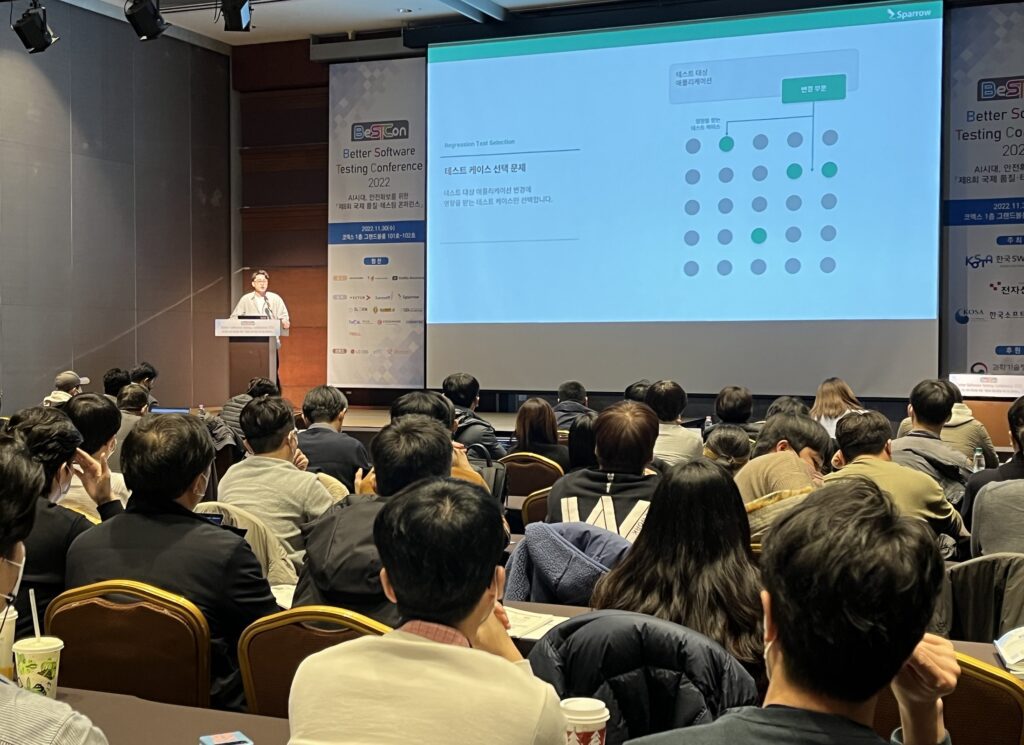 BeSTCon 2022는 테스터, QA, 품질관리 담당자 등이 참가하는 소프트웨어 테스팅 분야의 국내 최대 규모 콘퍼런스입니다. 스패로우는 이번 행사에서 ‘더 빠르게, 더 정확하게’를 주제로 부스를 운영해 소스코드 변경 내용을 기준으로 최적의 테스트 케이스를 선별하는 ‘Sparrow TSO’를 소개하고 시연을 진행했습니다.