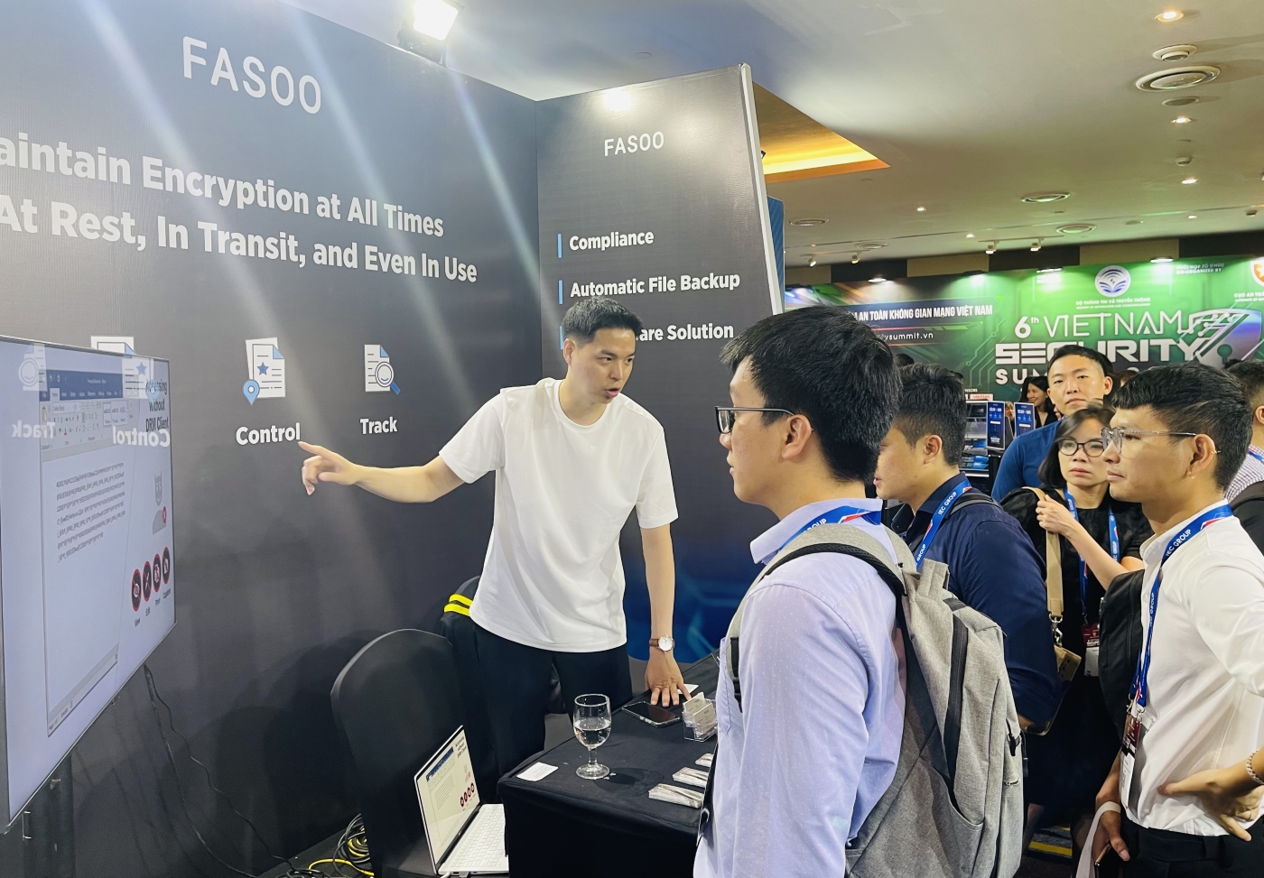 지난 5월 30일 인터컨티넨탈 하노이 랜드마크 72에서 열린 베트남 시큐리티 서밋 2024는 데이터 보안, 개인정보 보호 등 정보보안 분야의 최신 동향과 기술을 소개하는 동남아시아 최대 보안 행사 중 하나입니다. 파수는 단독 부스에서 문서 보호 솔루션 ‘파수 엔터프라이즈 디알엠(Fasoo Enterprise DRM, 이하 FED)’과 문서 백업 솔루션 ’FC-BR(Fasoo Content Backup and Recovery)’을 소개해 큰 관심을 받았습니다.