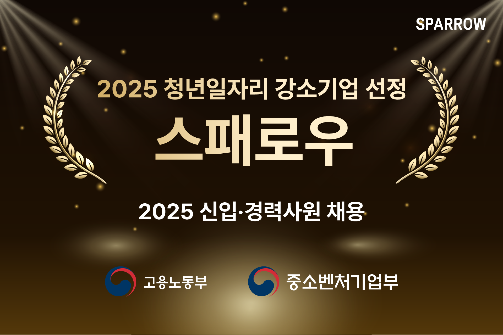 스패로우, 청년일자리 강소기업 선정···신입·경력직 적극 채용 스패로우가 청년친화적인 근로 여건과 기업 경쟁력을 인정받고 인재 채용에 적극 나섭니다. 스패로우는 고용노동부와 중소벤처기업부가 공동으로 주관한 ‘청년일자리 강소기업’에 선정됐으며, 신입 및 경력직 채용을 본격 2025.02.19