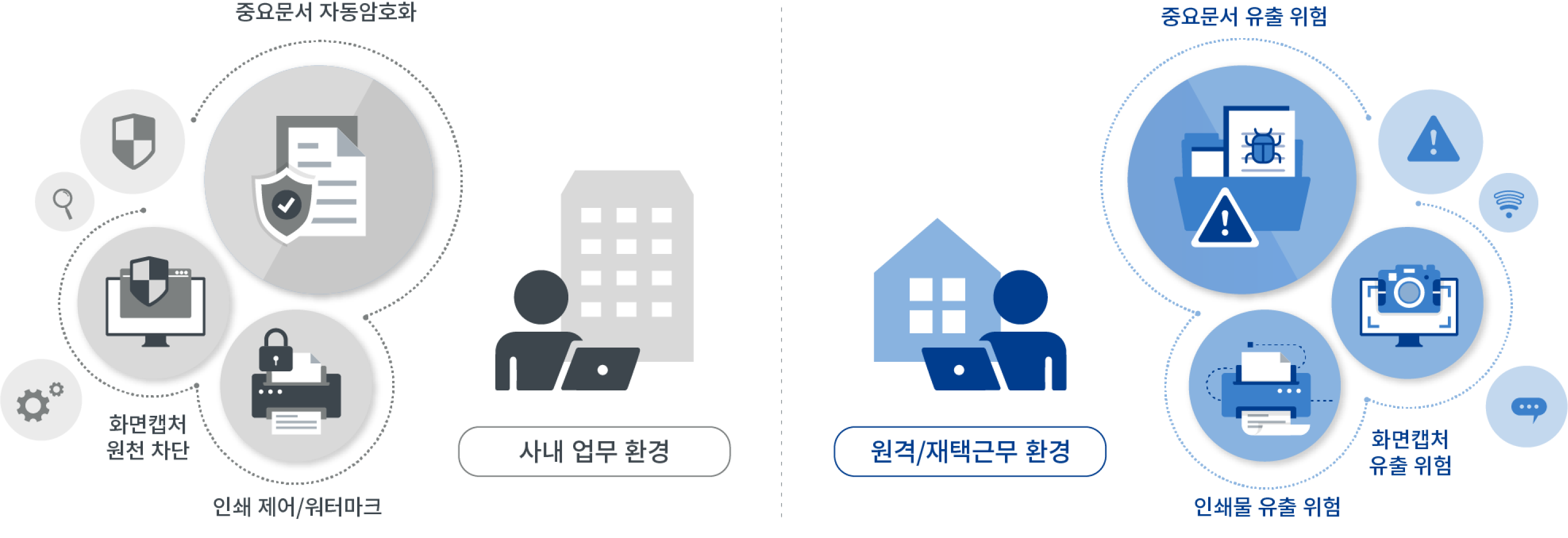 하이브리드 근무환경에서 다양한 디바이스를 활용하게 되면서, 데이터가 여러 장치에 분산 저장되는 경우가 빈번해졌습니다. 이러한 환경 변화로 많은 조직들은 다양한 장소에 파편화된 데이터를 보호하는 방법이 복잡해졌고, 협업 데이터들의 효율적인 활용 역시도 어려운 환경을 맞이했습니다.