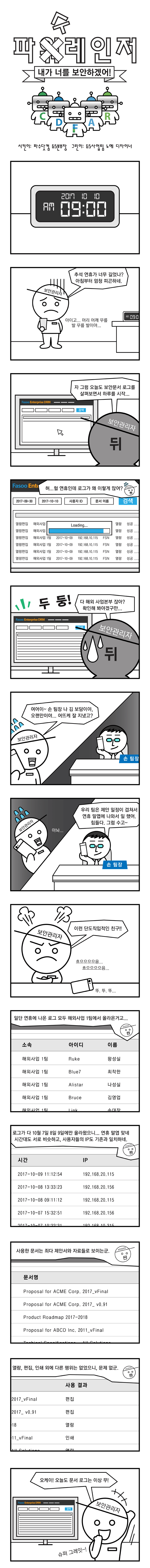 Fasoo에서 자체적으로 기획하고 그린 ‘보안 웹툰’ 서비스 웹툰 시리즈: 파수 레인저 | 에피소드 13 | 날짜: 2017년 10월 17일